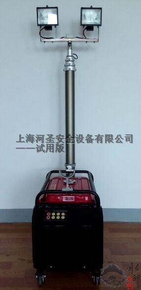 移動(dòng)升降照明燈是一體化的發(fā)電式移動(dòng)照明系統(tǒng)。由發(fā)電機(jī)、發(fā)電機(jī)底盤、氣動(dòng)升降燈桿、500W×2鹵鎢燈、控制箱等幾大部分組成。
